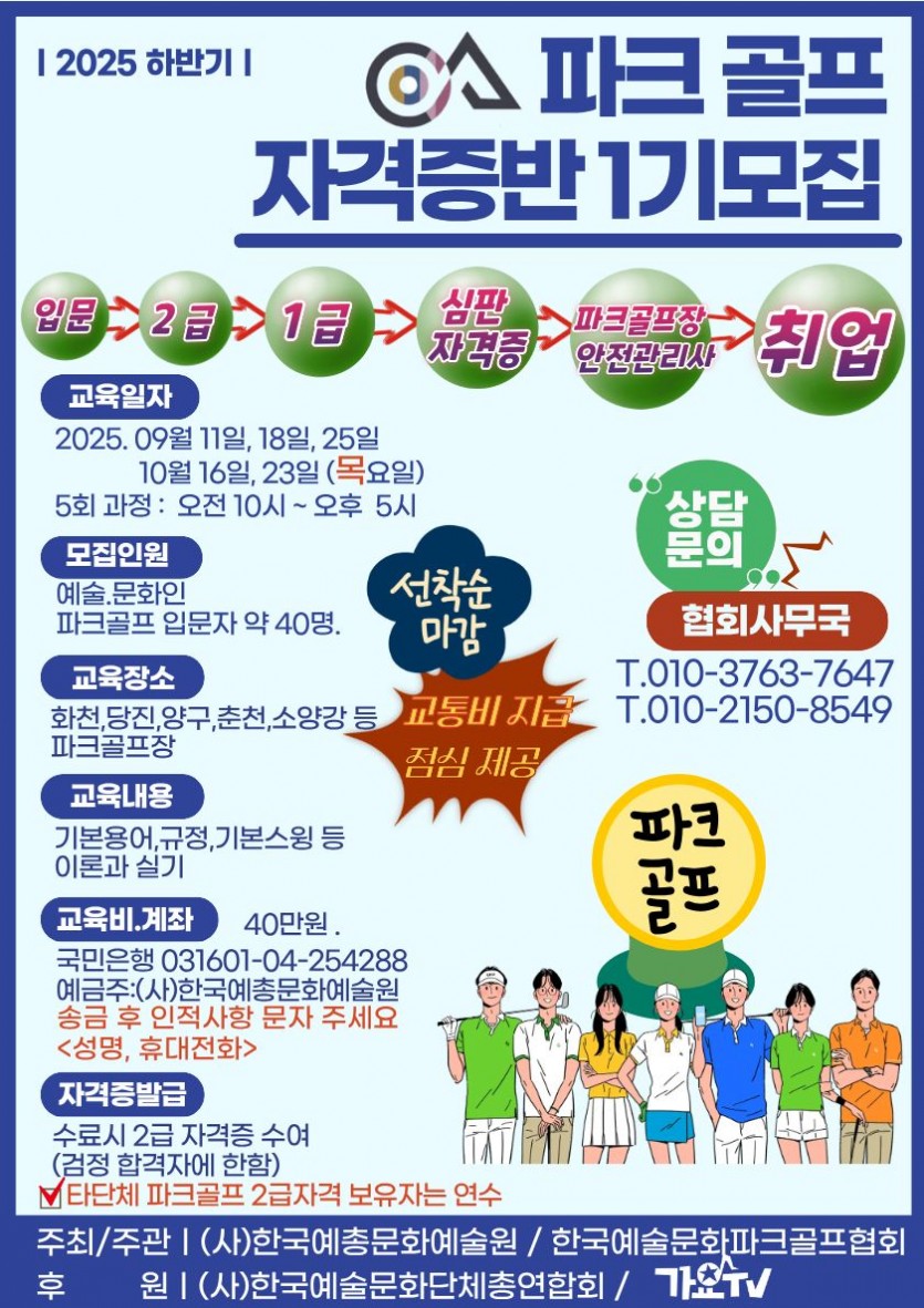 파크골프 자격증반 1기 모집 koreayechong 작성일 Aug 20 2025 152 0 관련링크 목록 본문 파크골프 자격증반 1기 모집 View Comment (0) 등록된 댓글이 없습니다. 목록